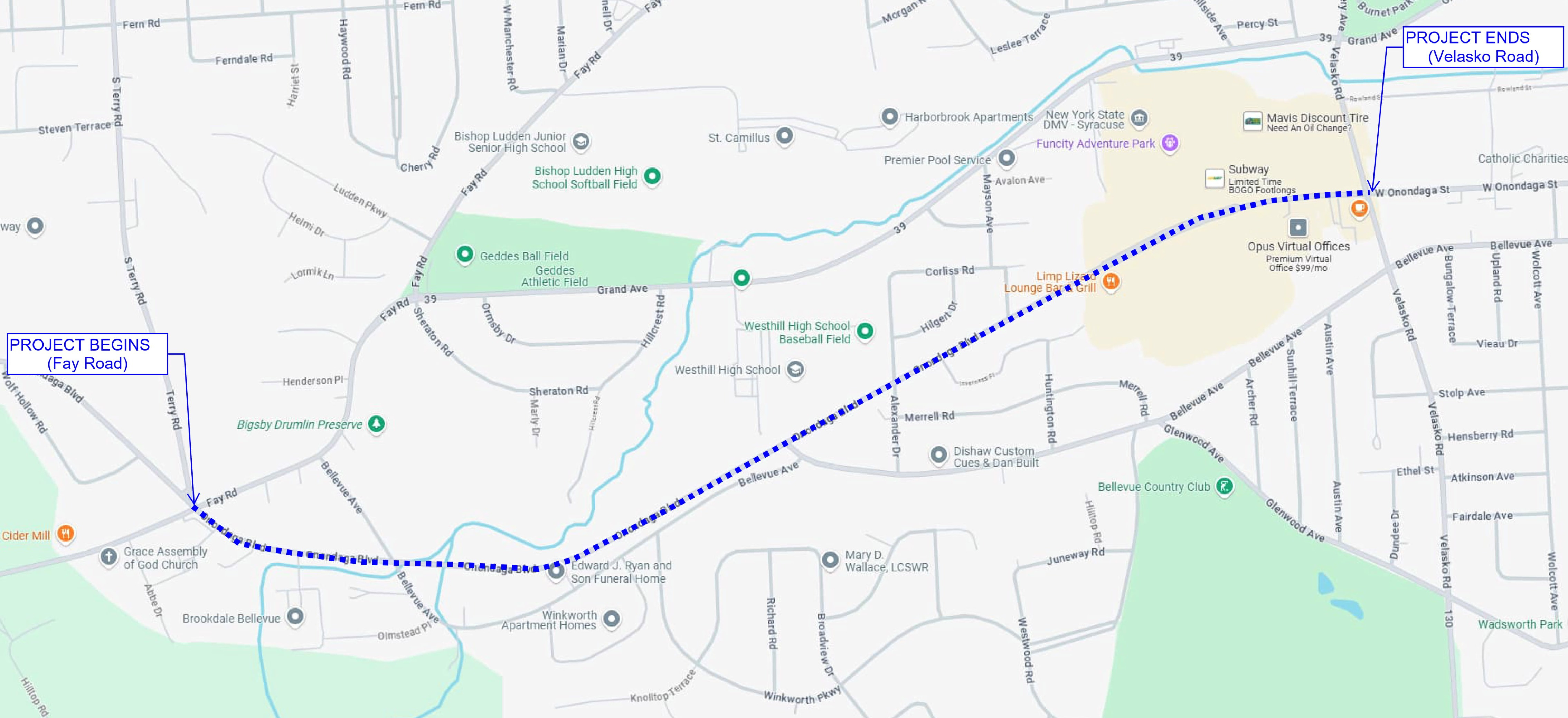 Onondaga Boulevard (from Fay Road to Velasko Road):